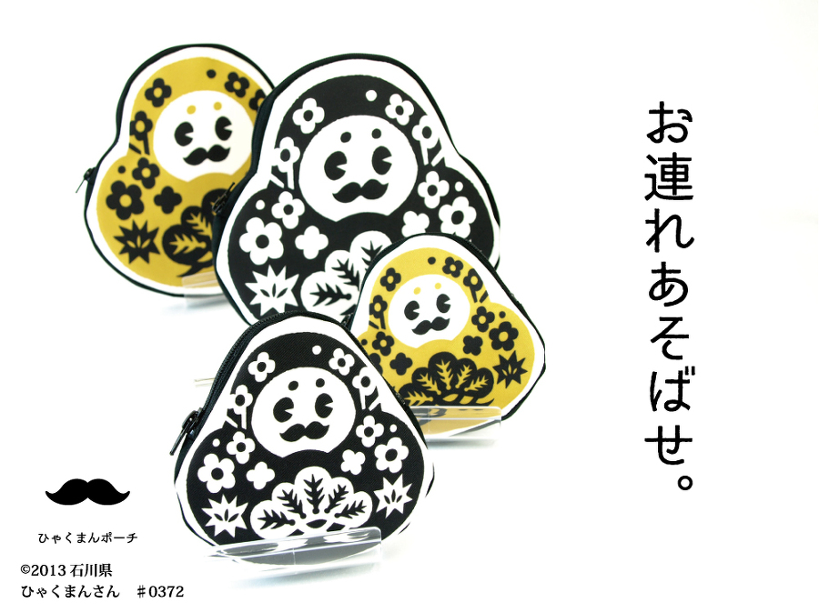 石川県の公式ゆるキャラのひゃくまんさんとコラボしたポーチです。